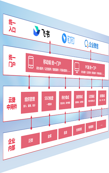 对协作平台提供支持服务,,支持企业应用与协作平台对接,,包含组织同步、、、、消息集成、、待办集成等。。。支持目前主流的协作平台:钉钉、、、、企微和飞书。。。